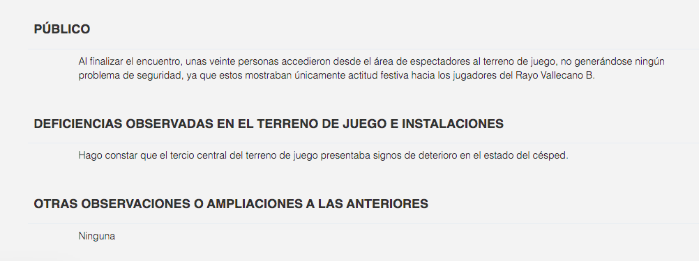 El colegiado del partido que enfrentó a Rayo Vallecano B y Real Madrid C este pasado en la Ciudad Deportiva ha vuelto a recoger en el acta una incidencia en el estado del césped del Campo 4: «El tercio central del terreno de juego presentaba signos de deterioro».