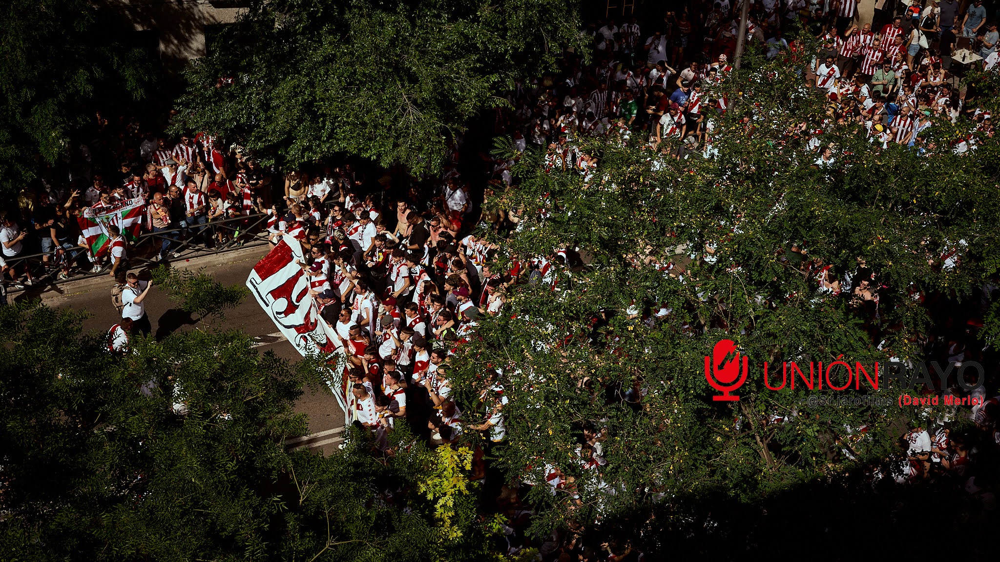 Los aficionados franjirrojos realizaron un corteo en la previa del partido frente al Athletic.