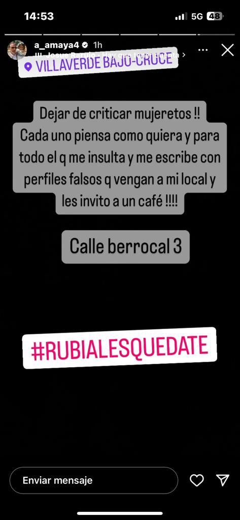 Amaya tuvo que borrar la storie de instagram y volvió a escribir otro mensaje: “Cada uno piensa cómo quiera”.