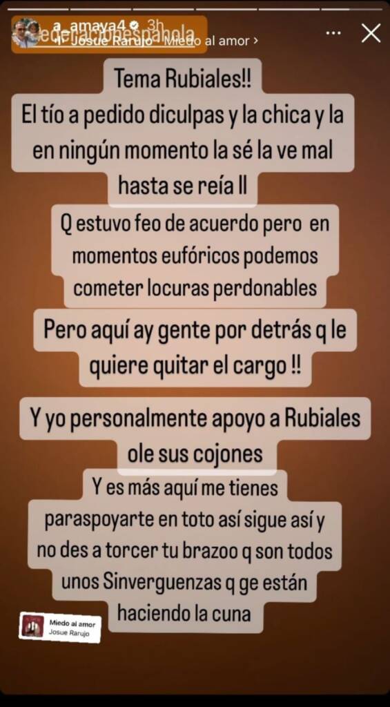 El exjugador del Rayo Vallecano Antonio Amaya ha opinado en sus redes sociales sobre el ‘Caso Rubiales – Jenni Hermoso’.
