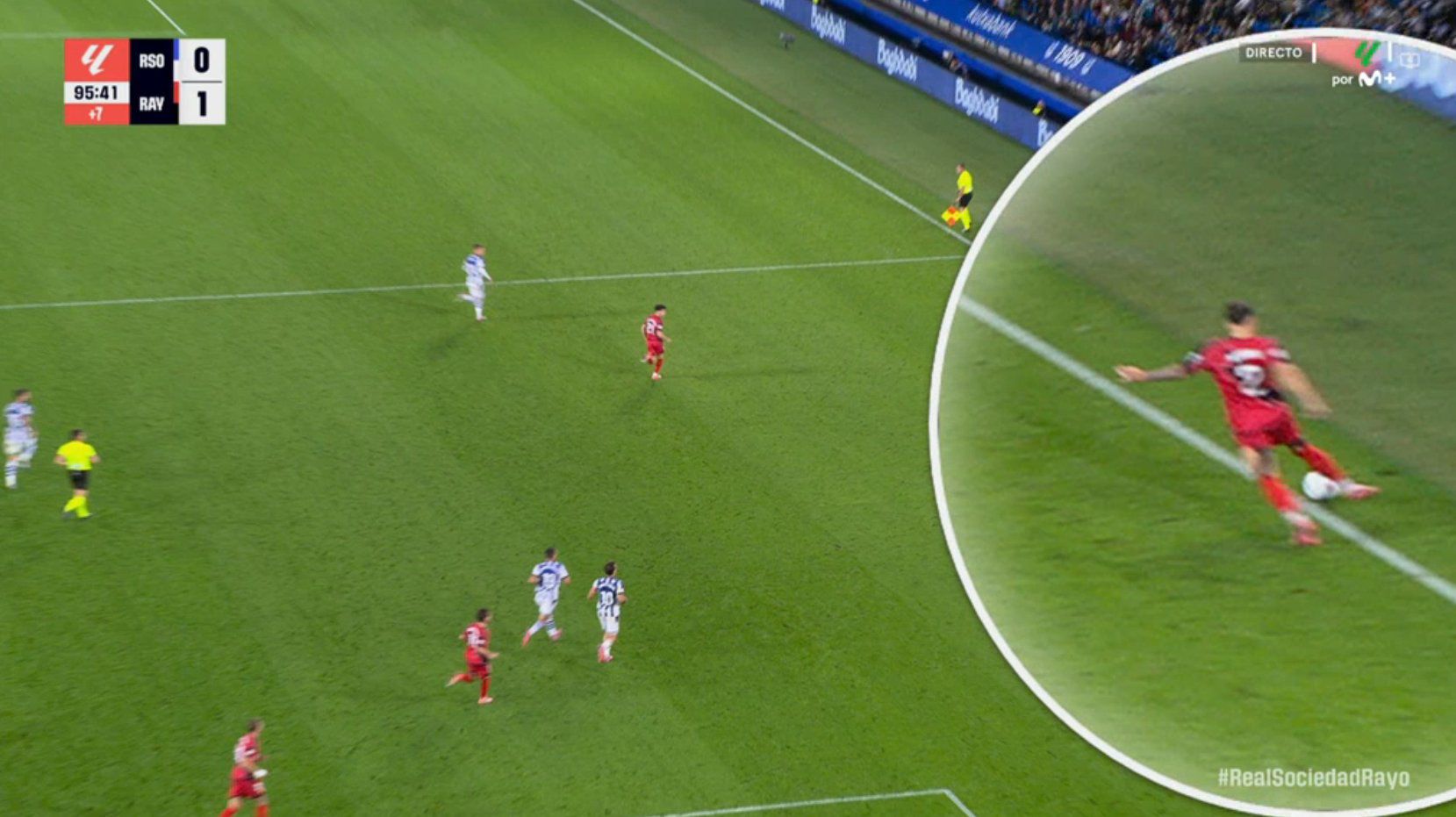Corría el minuto 84 cuando Ratiu consiguió llegar a un balón pegado a banda que, tras un gran pase de Fran Pérez al mismo Ratiu, derivó en el gol del «Pacha» Espino y a la postre, el gol de la victoria del Rayo. En primera instancia el colegiado del encuentro, José Luis Guzmán, no apreció que el balón había salido del todo, pese a las múltiples protestas de los jugadores de la Real Sociedad.