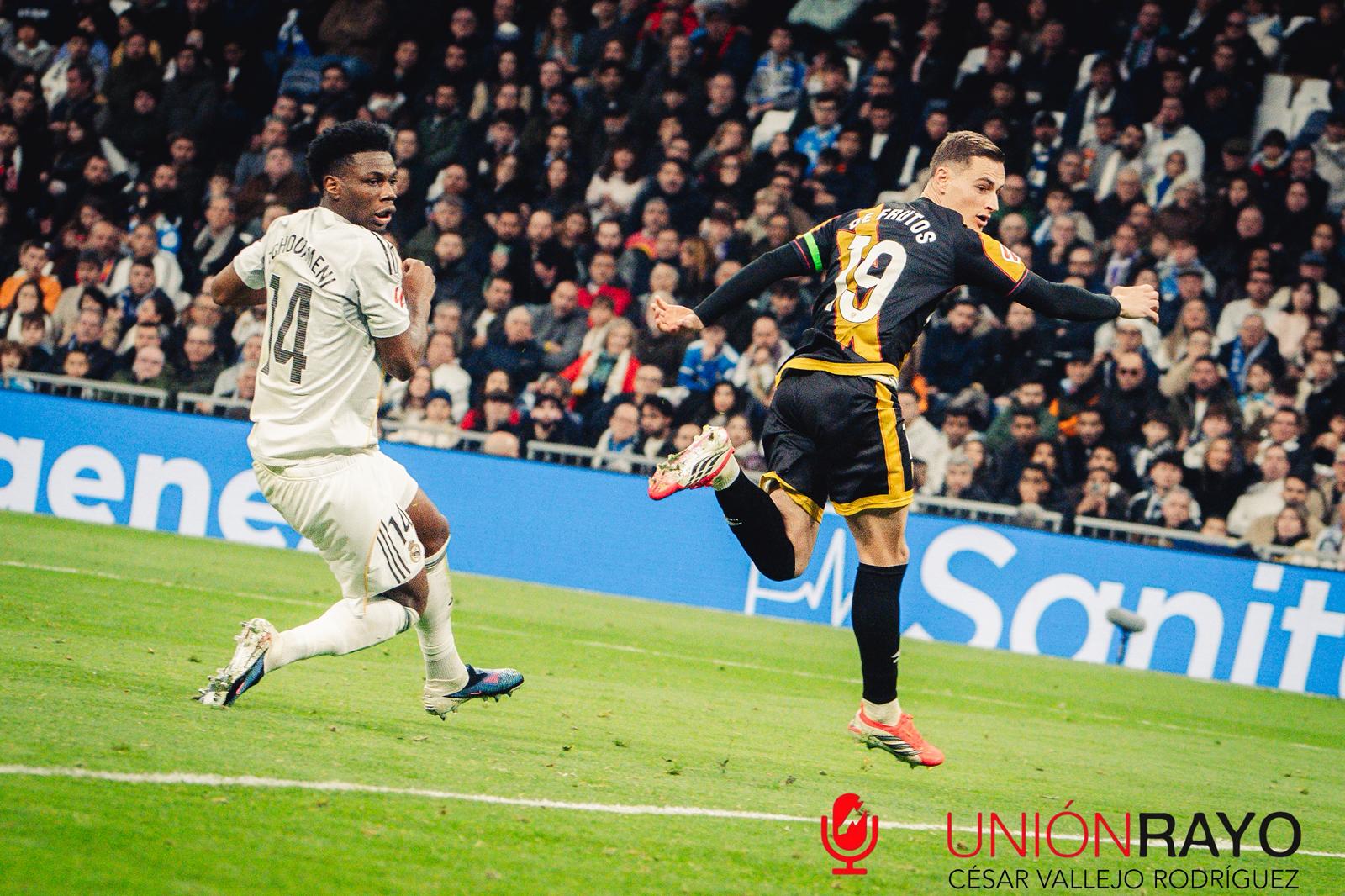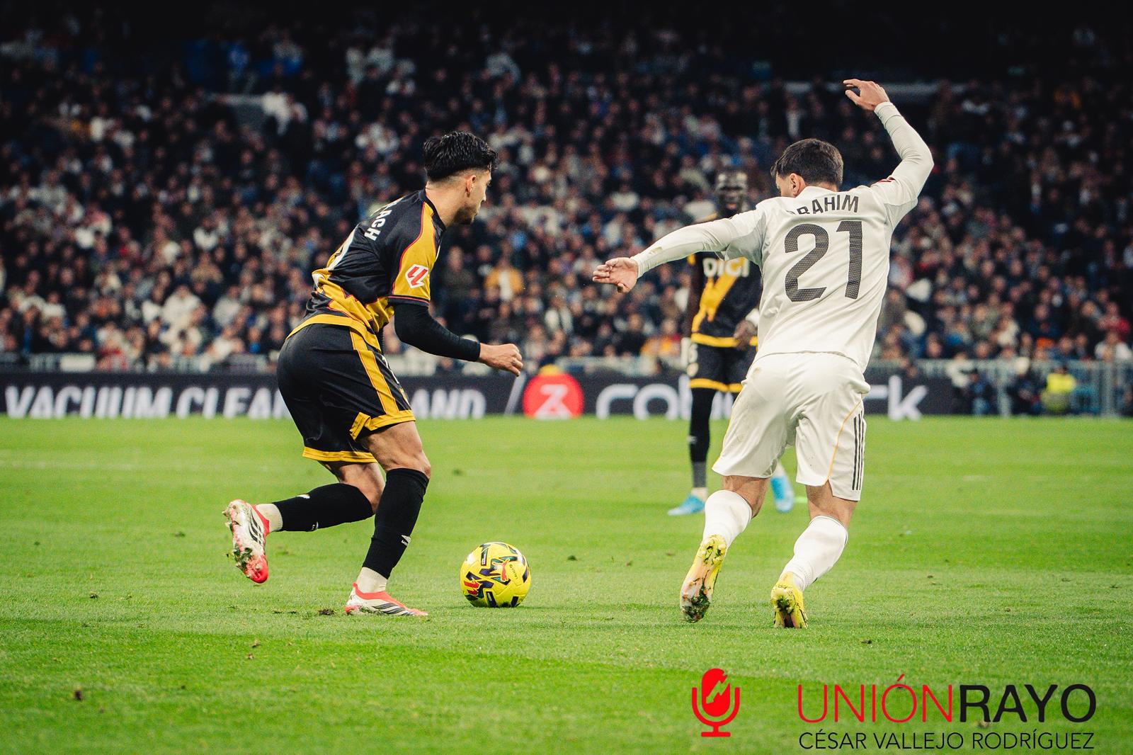 El partido arrancaba con un Rayo muy eléctrico de las botas de Ilias Akhomach. Una gran jugada por banda derecha entre el marroquí y Andrei Ratiu, acababa en acción individual de Ilias que cuando estaba dentro del área no definía con claridad y su disparo se marchaba lejos de los tres palos. Una acción que servía al Bernabéu y a los hombres de Arbeloa para que vieran que los de Vallecas no habían venido a pasearse.