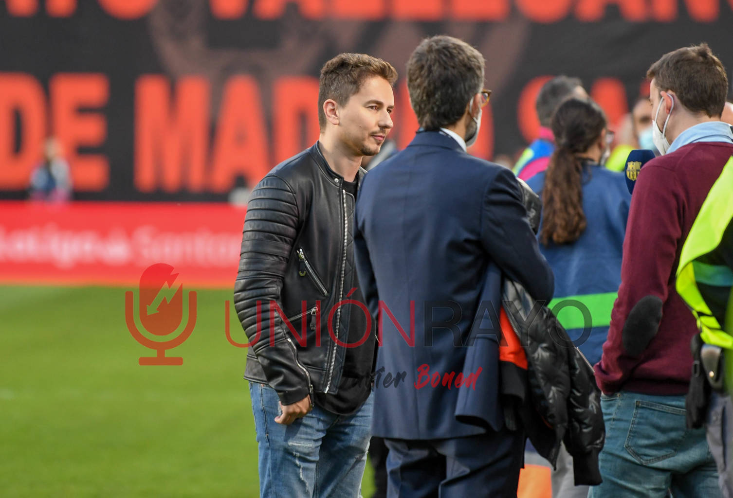 El que fuera campeón del mundo de MotoGP Jorge Lorenzo no se quiso perder el partido. El piloto estuvo en el campo de Vallecas (seguidor declarado del Barcelona).