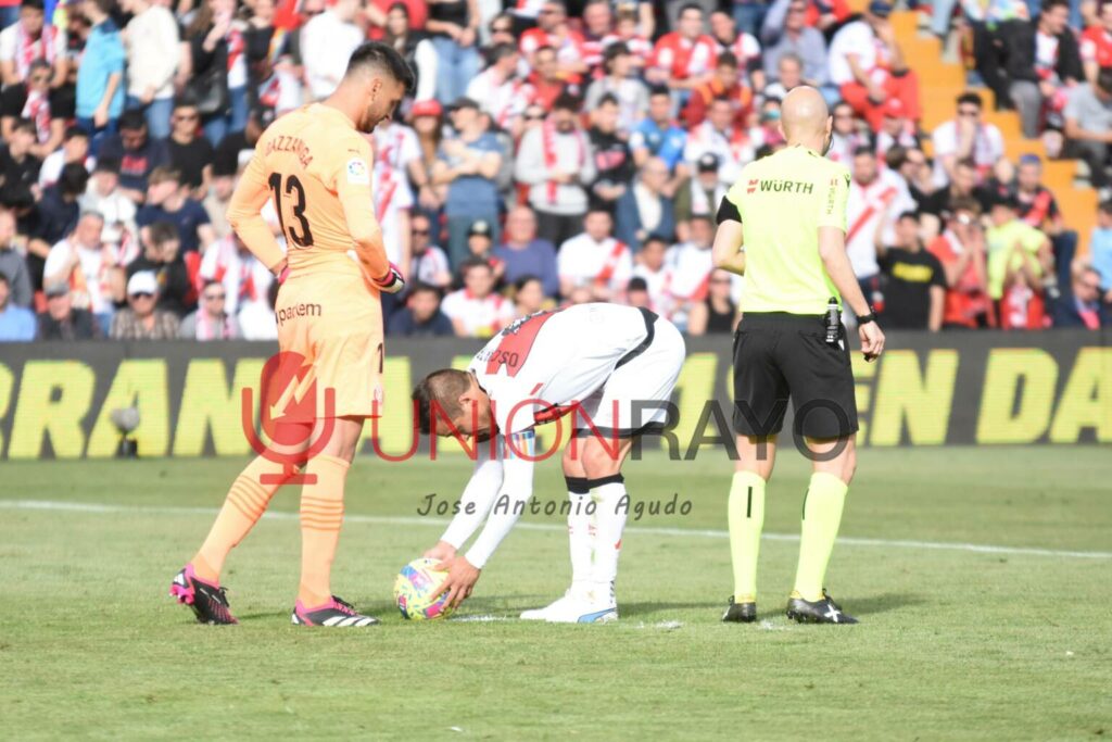 El Rayo Vallecano sumó un punto el pasado sábado en el Estadio de Vallecas frente al Girona de Michel que no dejó buen sabor de boca a pesar de la importancia. El equipo de Iraola fue capaz de adelantarse en dos ocasiones con los goles de Isi y Trejo y estas son algunas de las fotografías del encuentro: