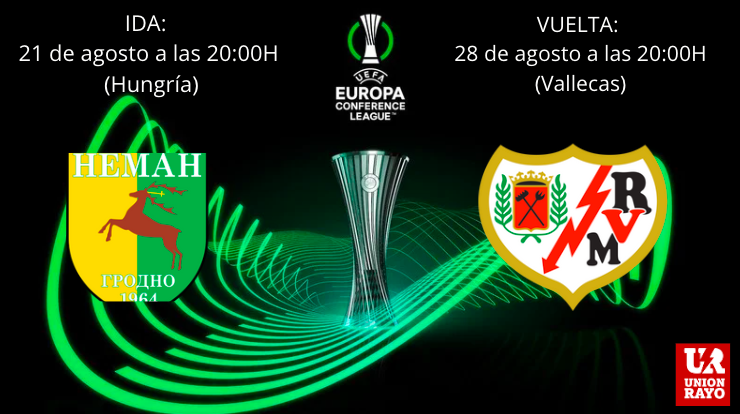 El Rayo Vallecano ya conoce los horarios para los partidos de la previa de la Conference League ante el Neman Grodno. La UEFA ha hecho oficial la fecha y hora tanto del partido de ida como el de vuelta que se disputará en el Estadio de Vallecas.