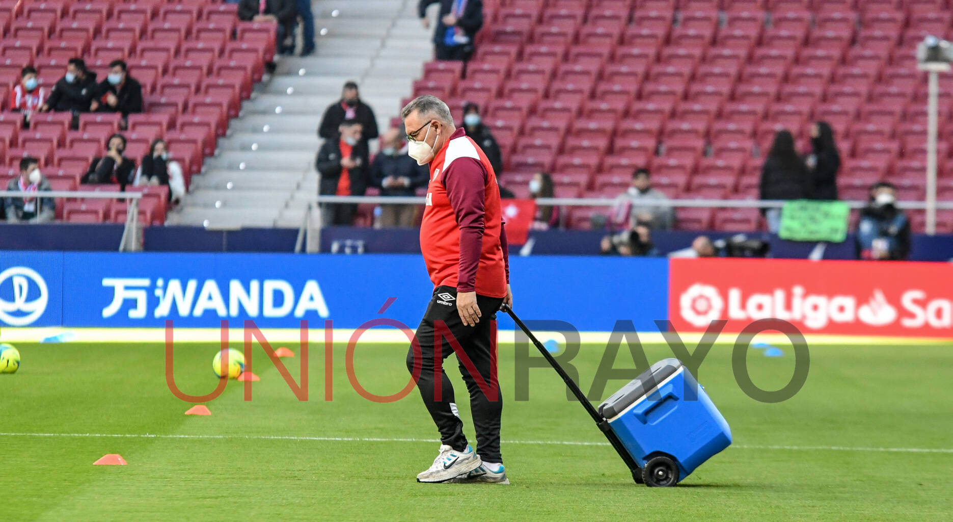 Esta vez sí hubo nevera en el Wanda. Al contrario que ocurriese en el último desplazamiento en Liga, el Rayo tuvo nevera para los jugadores.