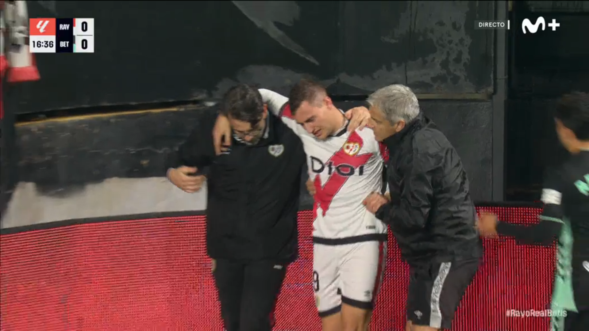 El futbolista del Rayo Vallecano, Jorge de Frutos, se lesiona de gravedad ante el Real Betis Balompié, en el encuentro correspondiente a la 16ª jornada de LaLiga EA Sports.