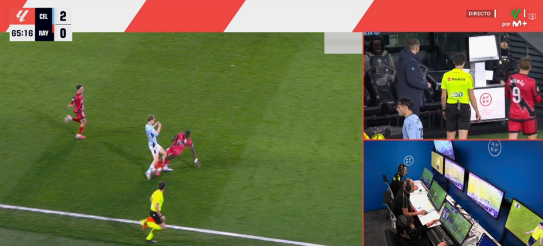 Aunque en primera instancia el colegiado catalogó la falta con tarjeta amarilla, finalmente mostró la cartulina roja tras ser llamado por el VAR.