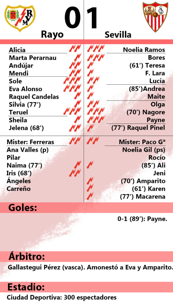 J2 1El Rayo Femenino disputaba en esta segunda jornada de LaLiga Iberdrola ante el Sevilla Femenino, en cual el resultado fue de 0-1. Un gol de Payne en los últimos minutos finales del encuentro hacía que las vallecanas se quedaran sin un preciado punto.
